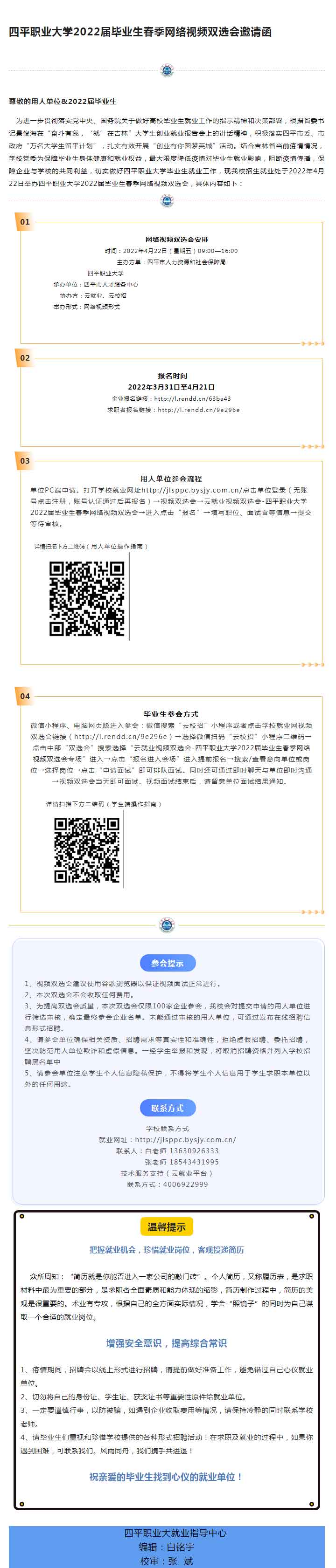 四平職業大學2022屆畢業生春季網絡視頻雙選會邀請函