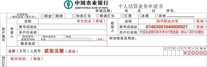 3、 報考四平職業大學單獨招生并已繳納200元報名費的考生,只要該考生來四平參加單獨招生考試,200元報名費給予返還。