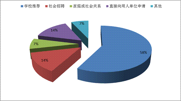 通過(guò)問(wèn)卷調(diào)查及其它渠道數(shù)據(jù)統(tǒng)計(jì)2015屆畢業(yè)生就業(yè)過(guò)程中運(yùn)用的主要途徑分類為: