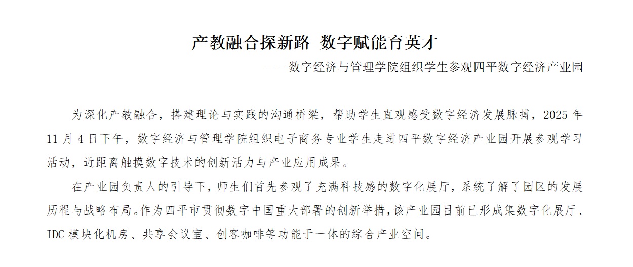 產教融合探新路 數字賦能育英才——學生參觀四平數字經濟產業園