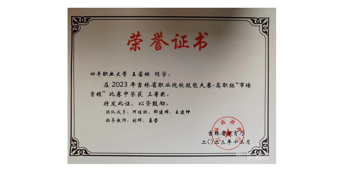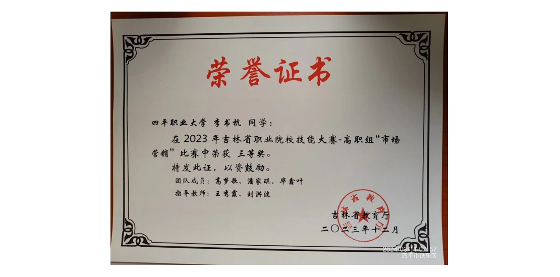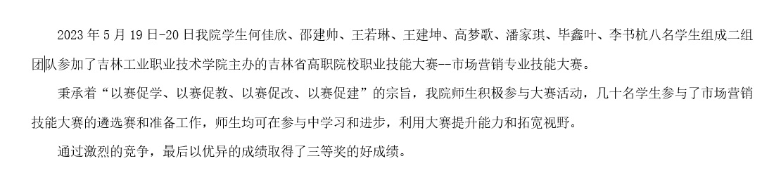 當(dāng)前位置:市場(chǎng)營(yíng)銷專業(yè)喜獲2023年吉林省高職高專職業(yè)技能大賽三等獎(jiǎng)