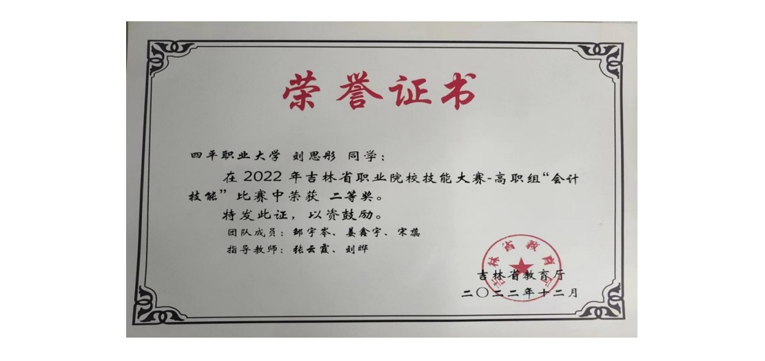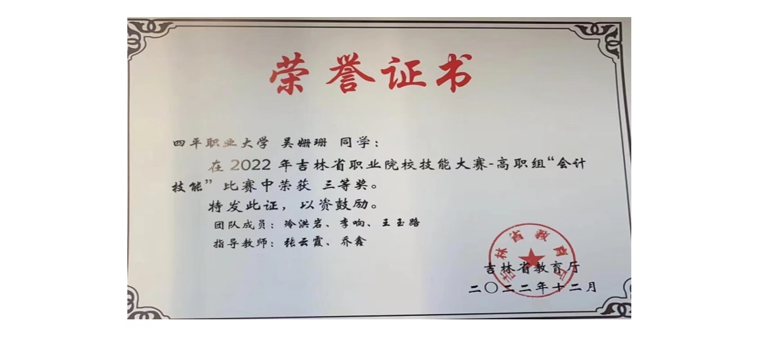 大數據與會計專業喜獲2022年吉林省職業院校技能大賽-高職組三等獎