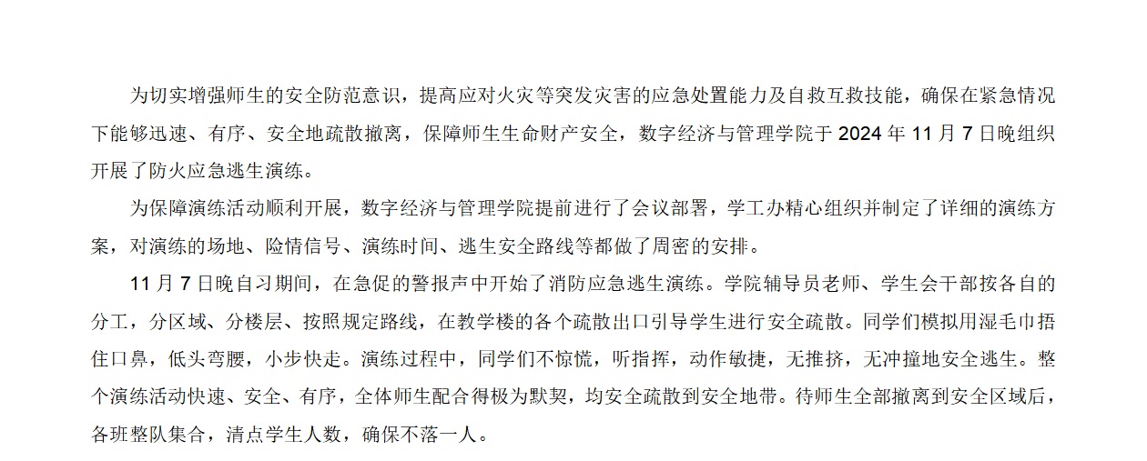 時時繃緊安全弦 牢牢守住安全關——數字經濟與管理學院組織應急逃生演練
