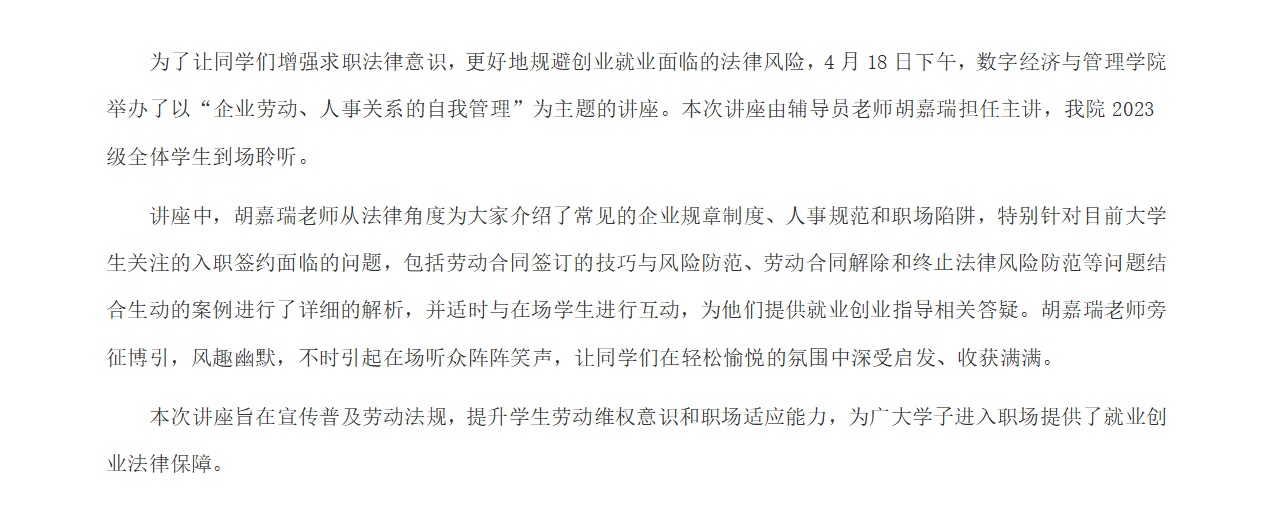 數(shù)字經(jīng)濟(jì)與管理學(xué)院召開求職安全與法制意識宣講會