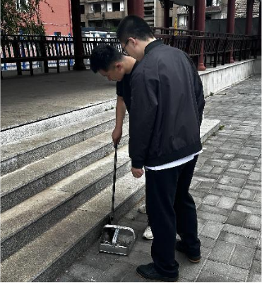 之后,學工辦閆宏宇老師帶領全體學生拿著勞動工具,不怕臟、不怕累,對恥鐘亭內外的地上垃圾進行了清掃,引得周圍群眾嘖嘖贊嘆,使恥鐘廣場整潔如初。清掃結束后,全體師生走上恥鐘亭,對整個恥鐘亭進行了瞻仰。