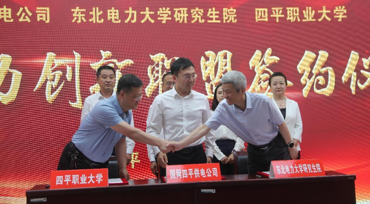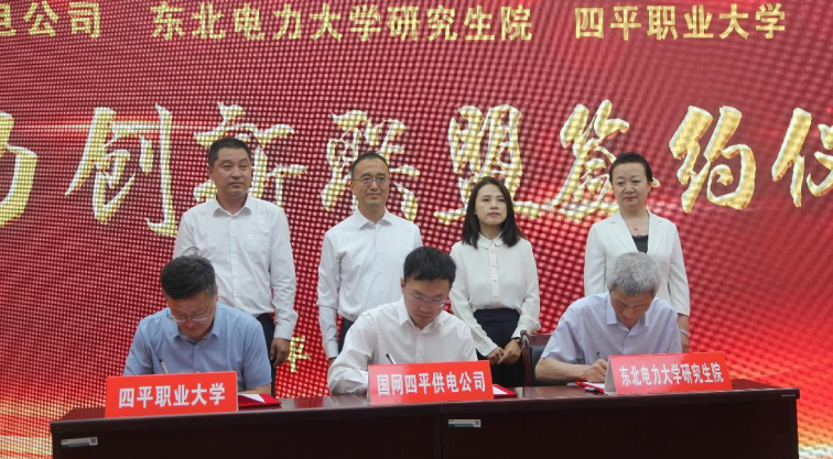 在簽約儀式上,趙宇院長代表四平職業大學同國網四平供電公司、東北電力大學研究生院,本著平等自愿、協同創新、互利互惠、資源共享的原則,簽定了《英城電力創新聯盟公約》。聯盟宗旨是搭建校企高質量發展創新合作平臺,充分發揮供電公司基礎資源優勢,基于電力企業一線存在的痛點、難點問題,深度挖掘高校科研經驗,有效整合企業、高等院校等各方面的創新資源,建立協同創新新機制,實現創新資源的集聚和優化配置,從而提升創新聯盟整體創新能力,培養科技創新人才,為高校提供科研與實踐場所,解決供電企業生產、營銷、經營過程中的各種疑難問題。