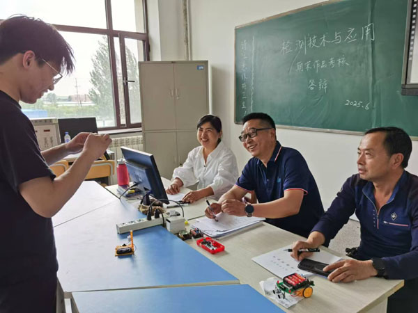6月16日,為推進教育改革創新,展示教育成果,由我院專業骨干教師戴英杰授課的《檢測技術與應用》,在D219實訓室開展了現場考核答辯及作品展示。學院電氣自動化專業負責人劉長國、專業教師代表張旭及戴英杰老師為評委,2024級電氣自動專業班全體同學到現場進行答辯觀摩。《檢測技術及應用》課程是面向裝備制造領域的專業課程,主要培養掌握精密測量技術、質量檢測方法及自動控制系統維護能力的高素質技術技能人才。課程緊密圍繞自動控制技術發展背景,側重實踐技能培養,適用于電氣自動化技術專業教學及相關工程技術領域。
