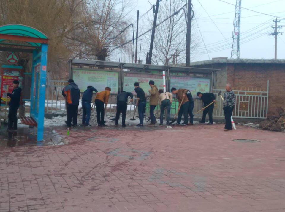 校團委全體學生干部義務清掃校門口公交站點積雪